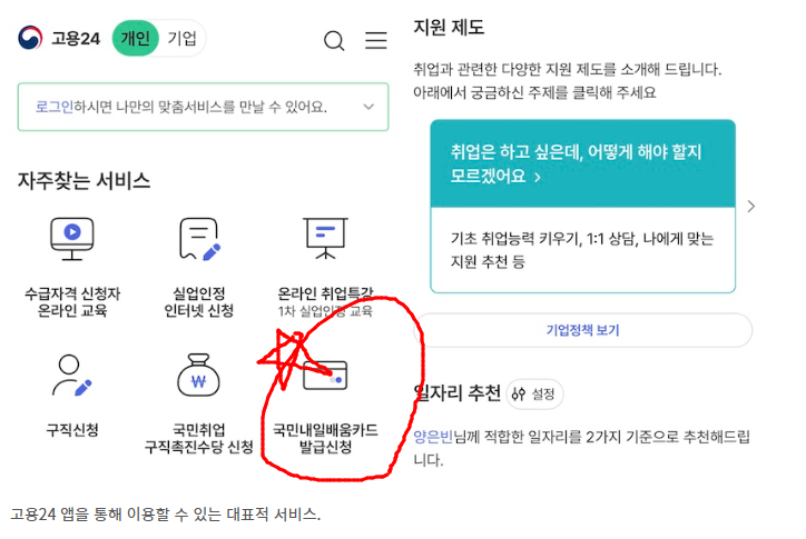 거주지 근처 고용센터를 방문하여 신청서를 작성하고, 직업상담을 받은 뒤 카드를 신청할 수 있습니다.