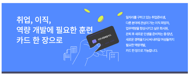 일반 쇼핑, 음식, 병원비 등에는 사용할 수 없습니다. 오직 국비 지원 훈련과정 수강료 결제용입니다.